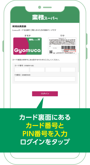 Gyomucaカードを店舗でご購入された際は、新規会員登録ページよりお客様情報をご登録ください。
