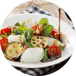 クリーミーバルサミコにオリーブオイルや砂糖、おろしニンニクなどを加えると、野菜にぴったりなコクのあるソースの完成♪程よい酸味があとを引く味わいに。