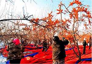 小さなオレンジ色の果実、サジー。降水量が少なく寒暖差がある過酷な環境でも育つ、グミ科の植物です。