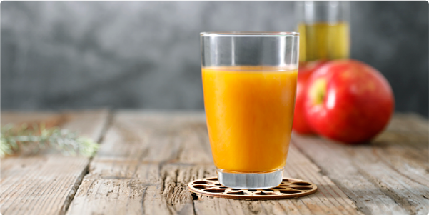 りんごジュースの代わりに野菜ジュースで割るのもおすすめ!割るジュースは果汁100%を選ぶと飲みやすい味わいに♪ |