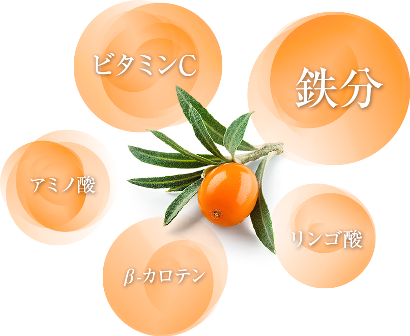 「シーバックソーン」や「シーベリー」などの名でも知られ、その果実を絞ったサジージュースは、今多くの注目を集めています。その理由は、果実にギュッと詰まった豊富なビタミンCをはじめとしたさまざまな栄養成分。鉄分やアミノ酸、リンゴ酸、β-カロテンなどを含み、栄養補助の食品としても期待されています。