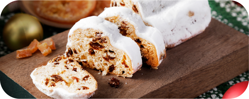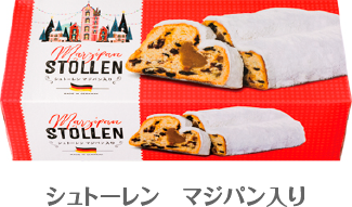 ドライフルーツをたっぷり練りこんだドイツの伝統的なクリスマススイーツ。ドイツではクリスマスまでの間、シュトーレンをスライスして少しずつ食べて過ごすという習慣があるそう。お手頃なミニサイズと、砂糖やアーモンドパウダーを練り合わせた“マジパン”を加えた2種類を用意しました。